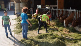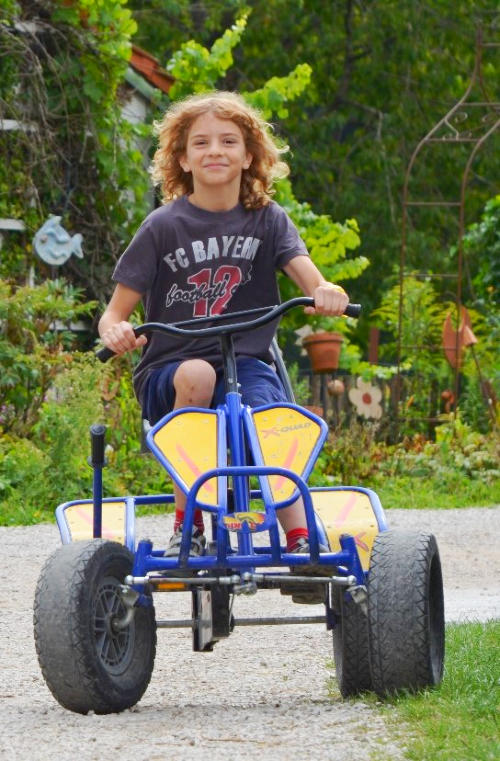 Hier findet Ihr einige Berichte über unser FerienCamp auf dem Ferlhof: Erfahrungen von Zsófia / 12.01.2020 Beim Lesen bitte beachten: Zsofie lernt Deutsch in der Schule als zweite (!) Fremdsprache (also neben Englisch und ihrer Muttersprache) êêêêê Einfach super!!! „Ich mag es sehr gern. Ich reise aus dem Ausland an. Ich kann sehr viel da lernen. Und Spaß habe ich auch. Da kann man Traktor fahren, Spagetti machen und auch mit den anderen spielen. Alle Leute sind sehr nett. Die Tiere füttert man auch.“ Zsófia (aus Ungarn) Kommentar dazu von Zsófias Vater; Wie oben, so beschreibt meine Tochter ihren Aufenthalt im DAO Sommer-FerienCamp auf dem Bauernhof. Sie hat schon viermal teilgenommen. Sie war erst acht Jahre alt, als wir sie das erste Mal angemeldet haben. Wir waren selbst etwas gespannt und unsicher, ob alles gut läuft. Wir sind 1000 km extra aus dem fernen Ausland angereist und haben unsere liebe einzige Tochter für zwei Wochen in einer fremden Umgebung gelassen. „Keine Nachricht ist eine gute Nachricht“ lautete das Motto, und tatsächlich war es so: Nach zwei Wochen haben wir eine Tochter zurückbekommen voll mit Lebensfreude, sehr vielen Erlebnissen und mit der Äußerung: „Nächstes Jahr komme ich wieder!“ (das Wort „möchte“ hat sie sich gleich gespart). Seitdem wurde das Bauernhofcamp Ihre Lieblings- Sommerbeschäftigung. Natürlich ist es für uns wichtig, dass sie dort die deutsche Sprache übt und Ihre Schulkentnisse im praktischen tagtäglichen Leben erweitert. Es geht aber hier um viel mehr: Erst einmal ist die Gruppe klein, es gibt genügend Aufmerksamkeit für jeden Teilnehmer; das ist so wie eine persönliche Betreuung. Dann hat jeder gewisse Freiheiten, kann sich unterschiedlichen Beschäftigungen anschließen, ob es Stockbrotbacken, Spielen auf dem großen Hof oder im angrenzenden Wald, Tiere füttern, Fußballspielen, Basteln, Eiersammeln, oder einfach Tiere-Streicheln ist, alle Tätigkeiten werden sorgfältig geplant, durchgeführt und mit viel Liebe an die Kinder gebracht. Doch das Beste ist die persönliche Beachtung: Jeder bekommt Aufmerksamkeit. Es gibt Disziplin und Regeln, aber mit viel Spaß. Die tägliche Verpflegung besteht aus Hausmannkost nach „Bauernhof-Art“, Bio-Gerichte, alles was die Kinder gerne essen. Dabei wird Wert gelegt auf Sauberkeit und eine Verpflegung ohne Lücken. Ich kann das DAO Sommer-FerienCamp nur weiterempfehlen und hoffe, dass wir noch mehrmals teilnehmen können. (Zoltán Bálo, Vater von Zsófia) Bericht: Unser Aller-Erstes Ferlhof-FerienCamp 2013 Artikel aus der Chronik der Wing Tsung Kindergruppe Petershausen Sommer-FerienCamp 2013 Ferien * Freizeit * Abenteuer mit der Kung-Fu-Kindergruppe auf dem Ferlhof Begleitet von einem hochka - rätigen Ausbilder-Team fand dieses Jahr bereits unsere vierte Sommerferien-Freizeit für Schulkinder statt, erst - mals auf dem Kunst- und Abenteuer-Bauernhof Ferl - hof, nördlich von München, bei Hilgertshausen/ Tandern. Diese Fahrt wird von der K u n g - F u - K i n d e r - G r u p p e Petershausen seit dem Som - mer 2010 regelmäßig angeboten. Neben den Mitgliedern aus der Wing-Tsung-Schule können auch alle interessierten Jungen und Mädchen im Alter von 6-12 Jahren an der Fahrt teilneh - men. Unsere Teilnehmer kamen also diesmal auch nicht nur aus Petershauen und der Umgebung, sondern sie reisten aus München, Freising, Röhrmoos, Vierkirchen und Scheyern an. Insgesamt nahmen 32 Kinder an der Ferien - fahrt teil, begleitet von vier Erwachsenen, die alle jahrelange Erfahrung in der Kinder- und Jugendarbeit haben. A uf dem idyllischen Ferl - hof, umgeben von Wiesen und Feldern, direkt neben einem Wäldchen und inmitten von Ställen mit Hühnern, Rindern, Kanin - chen und einem eigenen Streichel-Zoo verbrachten wir eine interessante und lehrreiche Woche auf einem bewirtschafteten Bio-Bauernhof. Die Kinder kümmerten sich um die Eier aus den Hühnerställen und beteiligten sich an der Versorgung der Tiere in den Ställen und im Streichelzoo. Wir verbrachten viel Zeit mit spannenden Gesellschaftsspielen, und besonders das Fantasy-Abenteuerspiel Munchkin, das inzwischen bei unseren Reisen Kult-Status erlangt hat, nahm täglich die Größeren unserer Teilnehmer stundenlang in Beschlag. Das im Wald gesammelte Holz wurde regelmäßig zum Lagerfeuermachen ver - wendet, dabei durften natürlich Brat- Würstchen auf den dazu passenden und selbst geschnitzten Grill-Stöcken eben - sowenig fehlen wie die einschlägigen Lagerfeuer-Lieder. D er gesamte Hof war zum Gokart-Fahren freigegeben, besonders der Teil mit der etwas abschüssigen Hofeinfahrt, auf dem man so richtig Geschwindigkeit erreichen konnte, eignete sich blendend dazu. Die Gokarts wurden neben dem Spielen auch für den Eiertransport von den drei Hühnerställen zur Sortiermaschine verwen - det, und ebenso, um die Tiere im Streichelzoo mit Wasser zu versorgen. Zusätzlich gab es noch ein großer Trampolin, auf dem sich die Kinder austoben konnten, oder das in der Mittagsruhe als Liegeplatz verwendet wurde. Einige entwickelten in der Woche ein erstaunliches Geschick darin, mit Armbrüsten und Klebepfeilen auf Zielscheiben zu treffen. Auch das Kinderschminken, der Kicker und das Angebot in der Töpferwerkstatt kamen bei den Kindern gut an. M anche Aktivitäten fanden selbstverständlich mit der gesamten Gruppe statt, wie zum Beispiel Feuerholz sam - meln, Pizza backen, die längste Spaghetti der Welt (oder zumin - dest des näheren Umkreises) herstellen, die dann anschlie - ßend auch verspeist wurde, sowie unsere tägliche BING- Runde, in der die Teilnehmer lernten, sich gegenseitig Feedback zu geben und ihre Wünsche und Anregungen mitzuteilen. U nd weil die Veranstaltung von der Kung-Fu-Schule ausging, durften selbstverständlich auch Einheiten in WING TSUNG (Chin. Kung-Fu- Stil mit Schwerpunkt auf unbewaffneter Selbstverteidigung), ESCRIMA (Philipp. Stockkampf) und MEW (Mittelalterlicher europäi - scher Waffen