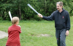 Hier findet Ihr einige Berichte über unser FerienCamp auf dem Ferlhof: Erfahrungen von Zsófia / 12.01.2020 Beim Lesen bitte beachten: Zsofie lernt Deutsch in der Schule als zweite (!) Fremdsprache (also neben Englisch und ihrer Muttersprache) êêêêê Einfach super!!! „Ich mag es sehr gern. Ich reise aus dem Ausland an. Ich kann sehr viel da lernen. Und Spaß habe ich auch. Da kann man Traktor fahren, Spagetti machen und auch mit den anderen spielen. Alle Leute sind sehr nett. Die Tiere füttert man auch.“ Zsófia (aus Ungarn) Kommentar dazu von Zsófias Vater; Wie oben, so beschreibt meine Tochter ihren Aufenthalt im DAO Sommer-FerienCamp auf dem Bauernhof. Sie hat schon viermal teilgenommen. Sie war erst acht Jahre alt, als wir sie das erste Mal angemeldet haben. Wir waren selbst etwas gespannt und unsicher, ob alles gut läuft. Wir sind 1000 km extra aus dem fernen Ausland angereist und haben unsere liebe einzige Tochter für zwei Wochen in einer fremden Umgebung gelassen. „Keine Nachricht ist eine gute Nachricht“ lautete das Motto, und tatsächlich war es so: Nach zwei Wochen haben wir eine Tochter zurückbekommen voll mit Lebensfreude, sehr vielen Erlebnissen und mit der Äußerung: „Nächstes Jahr komme ich wieder!“ (das Wort „möchte“ hat sie sich gleich gespart). Seitdem wurde das Bauernhofcamp Ihre Lieblings-Sommerbeschäftigung. Natürlich ist es für uns wichtig, dass sie dort die deutsche Sprache übt und Ihre Schulkentnisse im praktischen tagtäglichen Leben erweitert. Es geht aber hier um viel mehr: Erst einmal ist die Gruppe klein, es gibt genügend Aufmerksamkeit für jeden Teilnehmer; das ist so wie eine persönliche Betreuung. Dann hat jeder gewisse Freiheiten, kann sich unterschiedlichen Beschäftigungen anschließen, ob es Stockbrotbacken, Spielen auf dem großen Hof oder im angrenzenden Wald, Tiere füttern, Fußballspielen, Basteln, Eiersammeln, oder einfach Tiere-Streicheln ist, alle Tätigkeiten werden sorgfältig geplant, durchgeführt und mit viel Liebe an die Kinder gebracht. Doch das Beste ist die persönliche Beachtung: Jeder bekommt Aufmerksamkeit. Es gibt Disziplin und Regeln, aber mit viel Spaß. Die tägliche Verpflegung besteht aus Hausmannkost nach „Bauernhof-Art“, Bio-Gerichte, alles was die Kinder gerne essen. Dabei wird Wert gelegt auf Sauberkeit und eine Verpflegung ohne Lücken. Ich kann das DAO Sommer-FerienCamp nur weiterempfehlen und hoffe, dass wir noch mehrmals teilnehmen können. (Zoltán Bálo, Vater von Zsófia) Bericht: Unser Aller-Erstes Ferlhof-FerienCamp 2013 Artikel aus der Chronik der Wing Tsung Kindergruppe Petershausen Sommer-FerienCamp 2013 Ferien * Freizeit * Abenteuer mit der Kung-Fu-Kindergruppe auf dem Ferlhof Begleitet von einem hochkarätigen Ausbilder- Team fand dieses Jahr bereits unsere vierte Sommerferien-Freizeit für Schulkinder statt, erstmals auf dem Kunst- und Abenteuer-Bau - ernhof Ferlhof, nördlich von München, bei Hilgertshausen/ Tandern. Diese Fahrt wird von der Kung-Fu-Kinder- Gruppe Petershausen seit dem Sommer 2010 regelmäßig angeboten. Neben den Mit - gliedern aus der Wing-Tsung-Schule können auch alle interessierten Jungen und Mädchen im Alter von 6-12 Jahren an der Fahrt teilnehmen. Unsere Teilnehmer kamen also diesmal auch nicht nur aus Petershauen und der Umgebung, sondern sie reisten aus Mün - chen, Freising, Röhrmoos, Vierkirchen und Scheyern an. Insgesamt nahmen 32 Kinder an der Ferienfahrt teil, begleitet von vier Erwachsenen, die alle jahrelange Erfahrung in der Kin - der- und Jugendarbeit haben. A uf dem idyllischen Ferlhof, umgeben von Wiesen und Feldern, direkt neben einem Wäldchen und inmitten von Ställen mit Hüh - nern, Rindern, Kaninchen und einem eige - nen Streichel-Zoo verbrachten wir eine interessante und lehrreiche Woche auf einem bewirtschafteten Bio-Bauernhof. Die Kinder kümmerten sich um die Eier aus den Hühnerställen und beteiligten sich an der Versorgung der Tiere in den Ställen und im Streichelzoo. Wir verbrachten viel Zeit mit spannenden Gesell - schaftsspielen, und besonders das Fantasy- Abenteuerspiel Munchkin, das inzwischen bei unseren Reisen Kult-Status erlangt hat, nahm täg - lich die Größeren unserer Teilnehmer stundenlang in Beschlag. Das im Wald gesammelte Holz wurde regelmäßig zum Lagerfeuermachen verwendet, dabei durften natürlich Brat-Würstchen auf den dazu passenden und selbst geschnitzten Grill- Stöcken ebensowenig fehlen wie die einschlägigen Lagerfeuer-Lieder. D er gesamte Hof war zum Gokart-Fahren freigegeben, besonders der Teil mit der etwas abschüssigen Hofein - fahrt, auf dem man so richtig Geschwindigkeit erreichen konnte, eignete sich blendend dazu. Die Gokarts wurden neben dem Spielen auch für den Eiertransport von den drei Hühnerställen zur Sortiermaschine verwendet, und ebenso, um die Tiere im Streichelzoo mit Wasser zu ver - sorgen. Zusätzlich gab es noch ein großer Trampolin, auf dem sich die Kinder austoben konnten, oder das in der Mittagsruhe als Liegeplatz verwendet wurde. Einige entwickelten in der Woche ein erstaunli - ches Geschick darin, mit Armbrüsten und Klebepfeilen auf Zielscheiben zu treffen. Auch das Kinderschminken, der Kicker und das Angebot in der Töpfer - werkstatt kamen bei den Kindern gut an. M anche Aktivitäten fanden selbstverständlich mit der gesamten Gruppe statt, wie zum Beispiel Feuerholz sammeln, Pizza backen, die längste Spaghetti der Welt (oder zumindest des näheren Umkreises) herstellen, die dann anschließend auch verspeist wurde, sowie unsere tägliche BING-Runde, in der die Teilnehmer lernten, sich gegenseitig Feedback zu geben und ihre Wün - sche und Anregungen mitzuteilen. U nd weil die Veranstaltung von der Kung-Fu-Schule ausging, durften selbstverständlich auch Einheiten in WING TSUNG (Chin. Kung-Fu-Stil mit Schwerpunkt auf unbewaffneter Selbstverteidigung), ESCRIMA (Philipp. Stockkampf) und MEW (Mittelalterlicher europäischer Waffenkampf mit Schwertern) nich